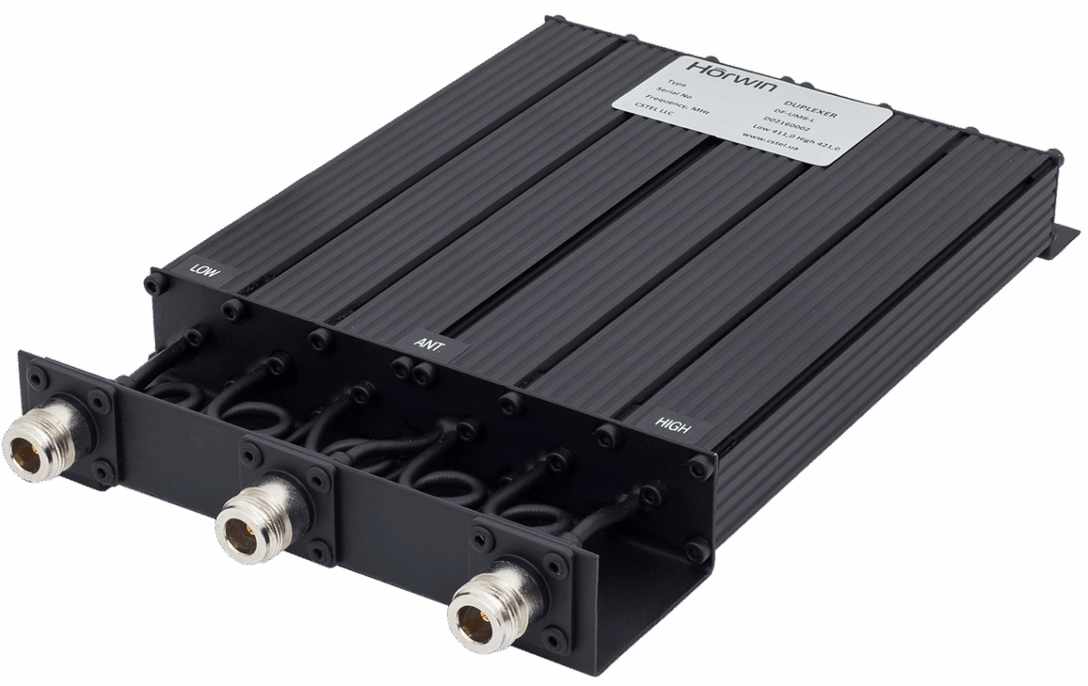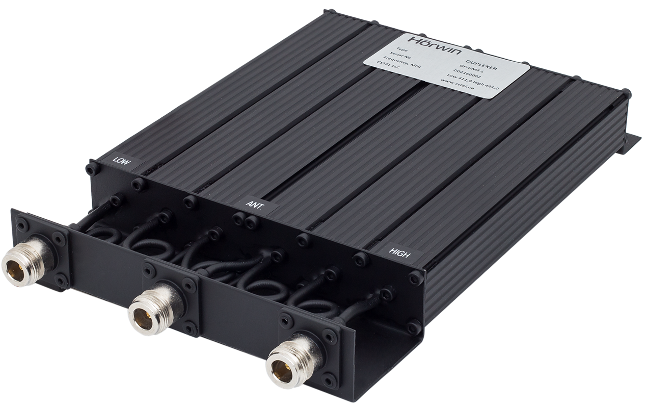 HORWIN DF-UM6-L — малогабаритний дуплексний фільтр діапазону UHF на шести прямокутних резонаторах, що реалізуються з використанням смугно-реєкторної схеми. Дуплексні фільтри такого типу знаходять широке застосування в антено-фідерних трактах ретрансляторів, дуплексних базових станцій та інших радіопередавальних системах, коли необхідно забезпечити приєднання приймального та передавального тракту до загальної антени. Фільтр настроюється індивідуально, частоти (смуги) приймання й передачі мають бути вказані під час оформлення замовлення.