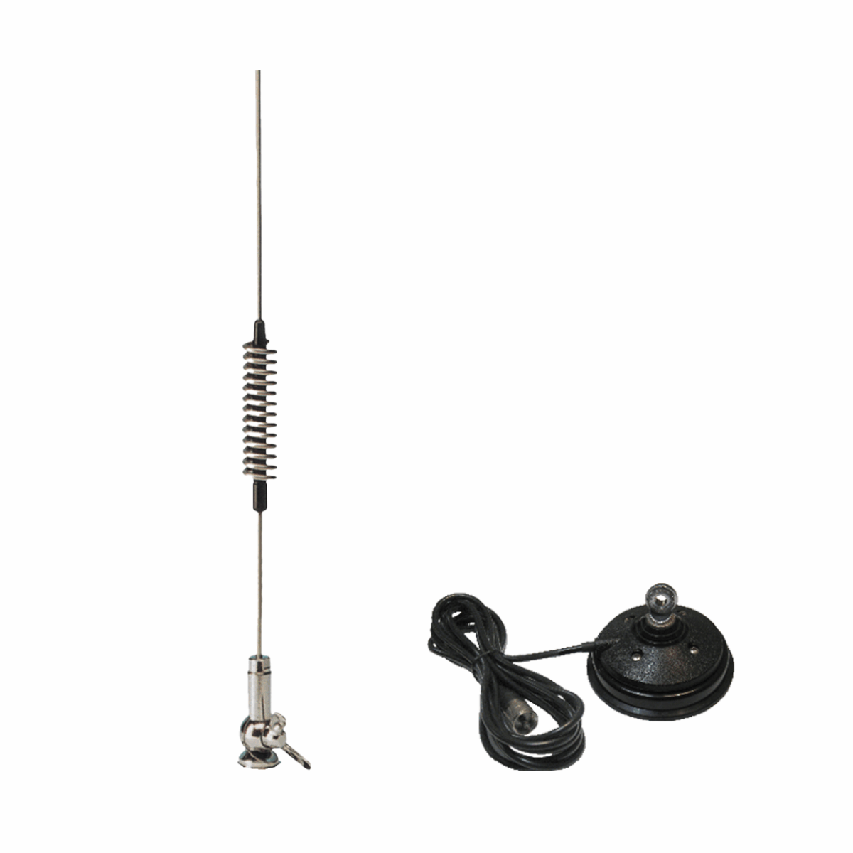 SU 370-490 SL — це мобільна антена вертикальної поляризації з регульованим діапазоном 370-490 МГц і довжиною хвилі 1/4λ + 1/2λ. у комплекті з магнітною основою ø 92 мм та кабелем RG 58U довжиною 3,6 метрів і роз’ємом BNC або UHF, діапазон налаштування частот 370-490 МНz. Налаштування на робочі частоти виконується за схемою, що додається.Автомобільна двоелементна 1/4λ + 1/2λ штирьова антена, хромовані випромінюючі елементи виготовлені з нержавіючої сталі. Вузол узгодження і котушка, що узгоджує, знаходиться в міцних герметичних корпусах, що забезпечують надійність і довговічність конструкції антени. Налаштування на робочі частоти виконується за схемою, що додається.