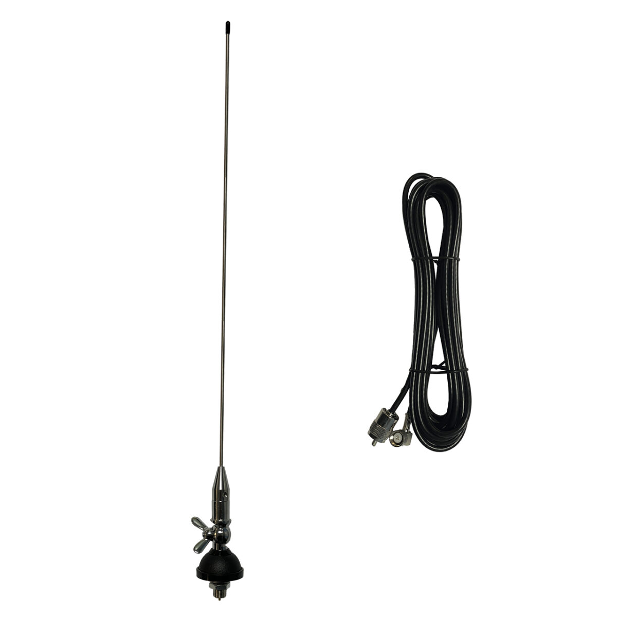 Автомобільна штирова антена TQC-M55 з поворотним механізмом та врізним кріпленням у комплекте з кабелем RG 58U довжиною 5 метрів і роз’ємом SO235, діапазон налаштування частот 55-550МНz (повний аналог Sirio SMA 55-550 SL)TQC-M55 — це мобільна антена вертикальної поляризації з регульованим діапазоном 55-550МНz і довжиною хвилі 1/4λ. Налаштування на робочі частоти використовуються за схемою, що додається. Зручний поворотний механізм дозволяє розмістити антену відповідно до вимог замовника. Надійне врізне кріплення гарантує стійкість антени на корпусі автомобіля. Антена призначена для встановлення на магнітних кріпленнях з роз’єм типу PL-259 магнітне кріплення SIRIO (MAG 125 SL і MAG 110 SL). Для кріплення за багажник або водостік корпусу автомобіля рекомендується використовувати кріплення типу TS-64 або TS-07.
