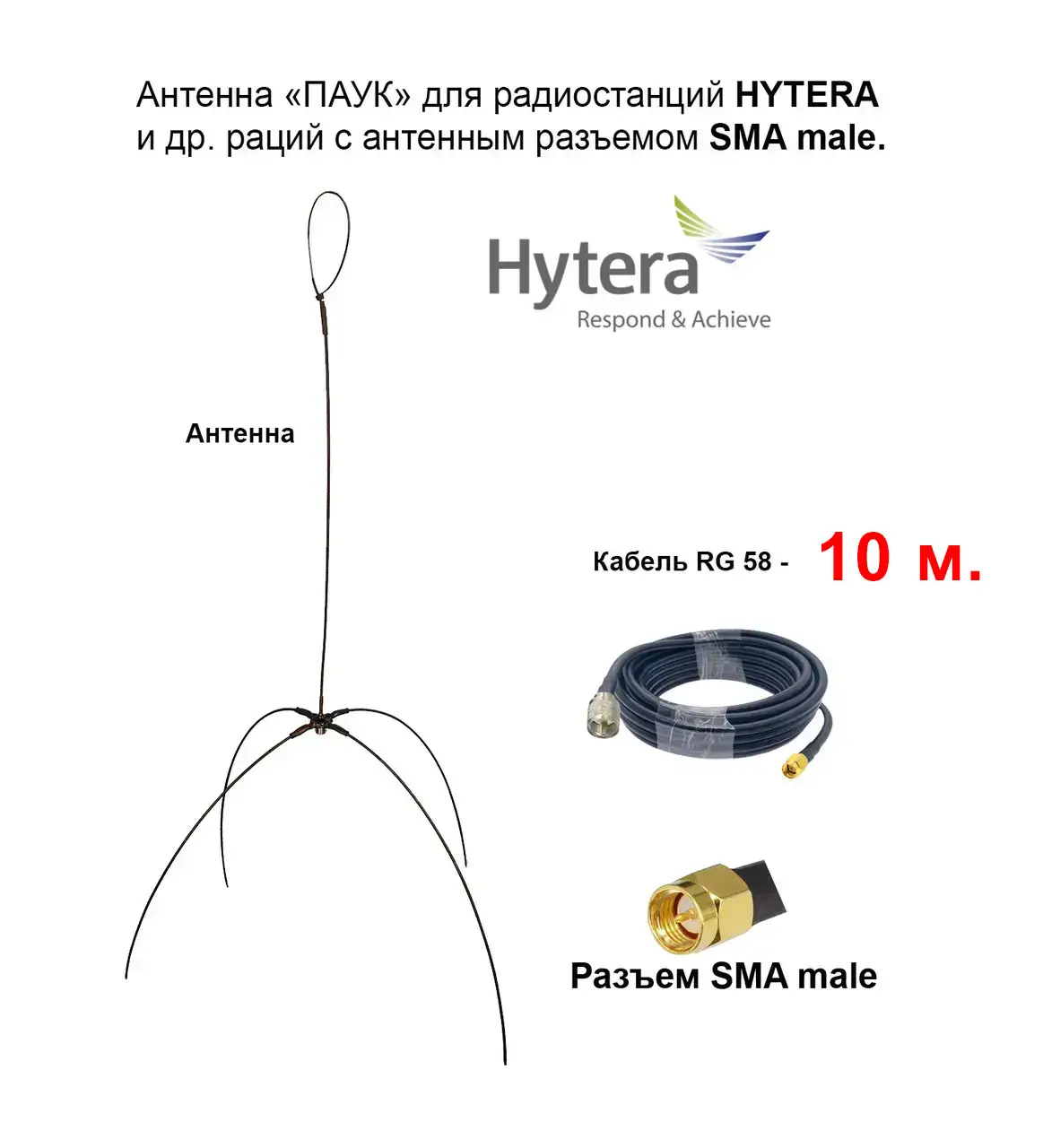 Виносна антена «ПАВУК», кабель з роз’ємами PL- SMA-male, для рацій HYTERA серії PD6xx та HP7xx 10 метров